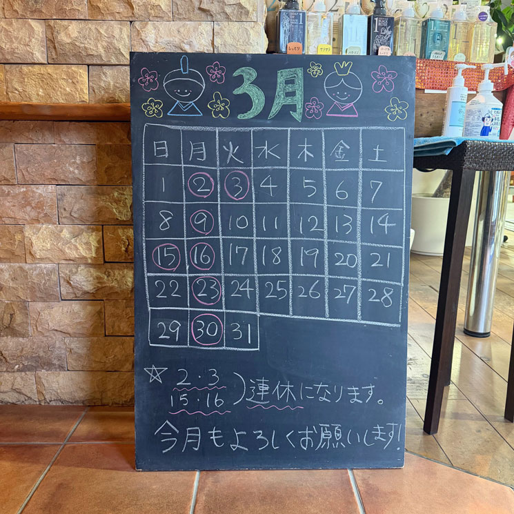 2026年3月の営業カレンダーを更新しました。