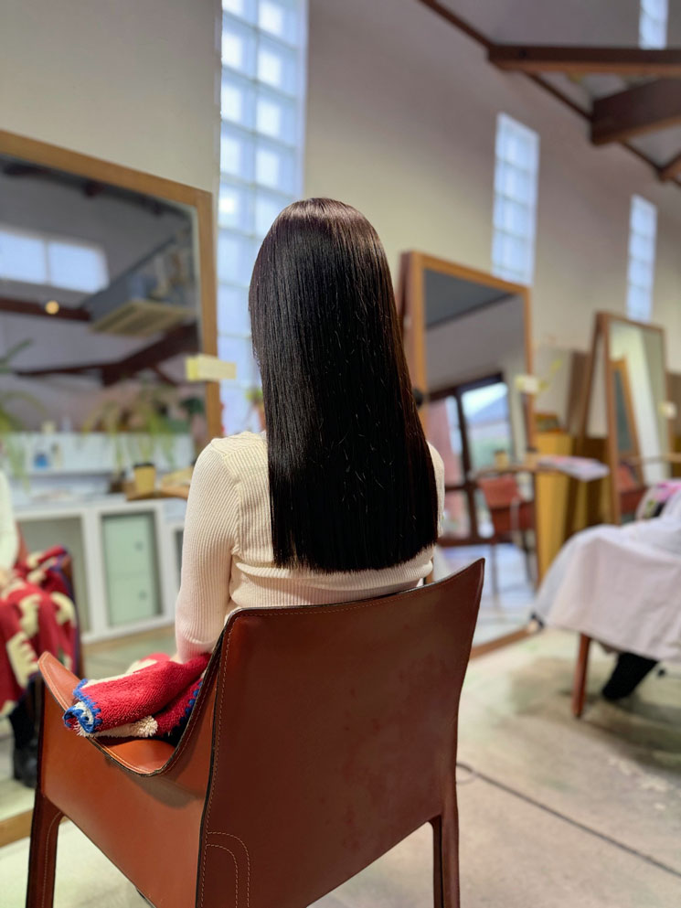 来年には成人式も控えているので、毛先を整える様にカットしてからカラーリングを施術しました。