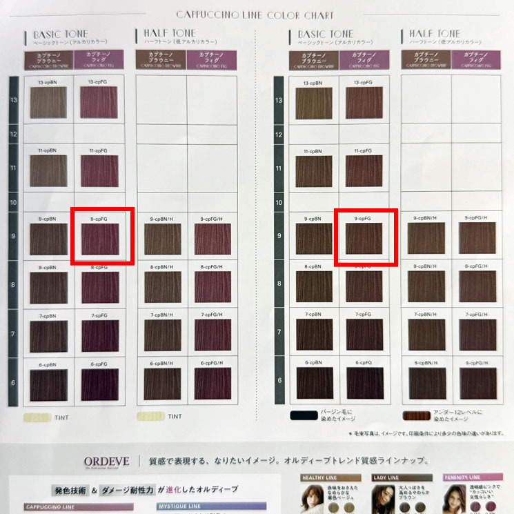 今回お試しいただいたヘアカラーは、この春夏の新色ヘアカラー「カプチーノライン」のカプチーノフィグというカラーです。