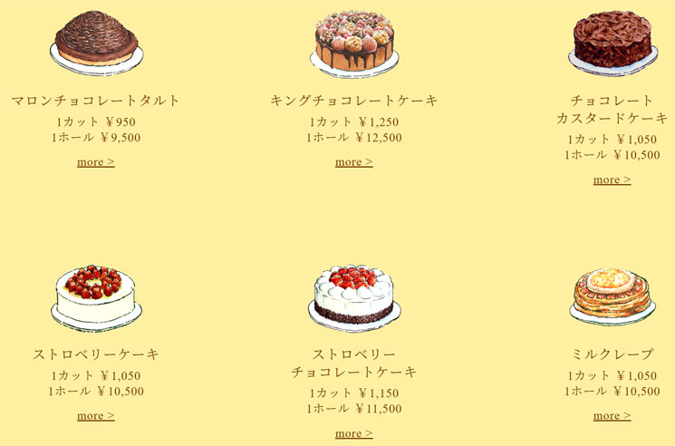 お店の前には大きなケーキのショーケースがあり、いかにもおいしそうなケーキがホールで12種類並んでいます。