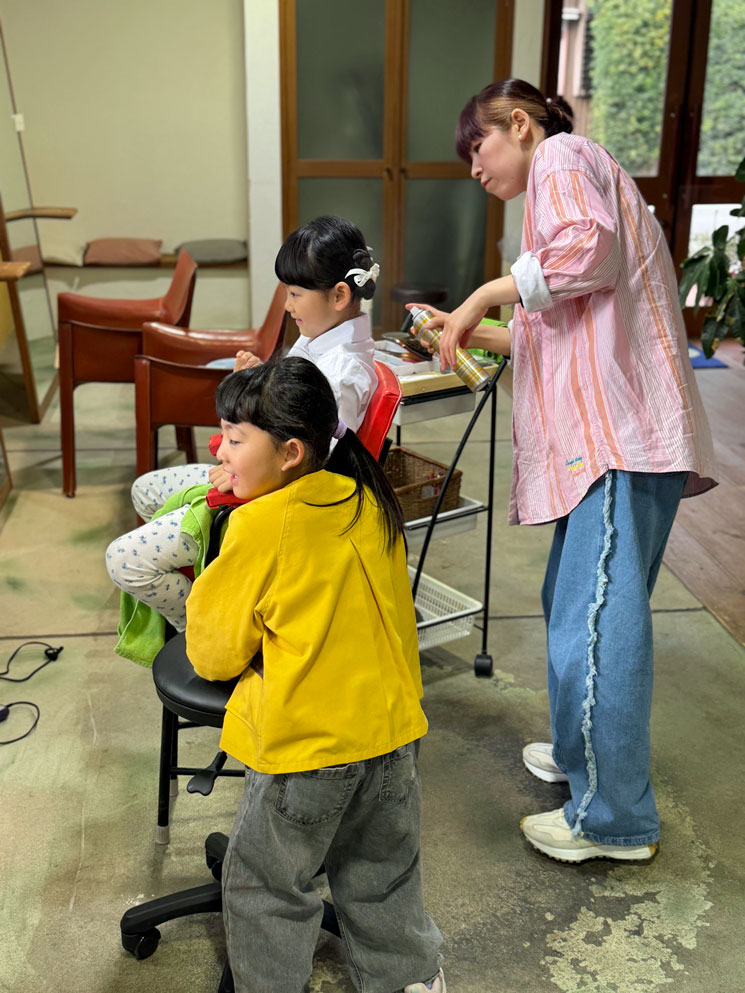 朝早くから、お客様に交じり入学準備に忙しくしていた子供達。
