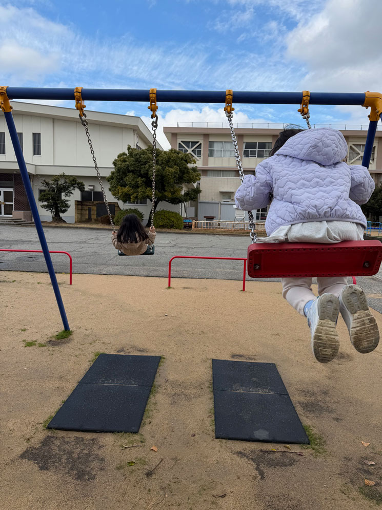 初詣の後は、元旦はお天気が良かったので、子供達と近くの小学校まで遊びに行って来ました。