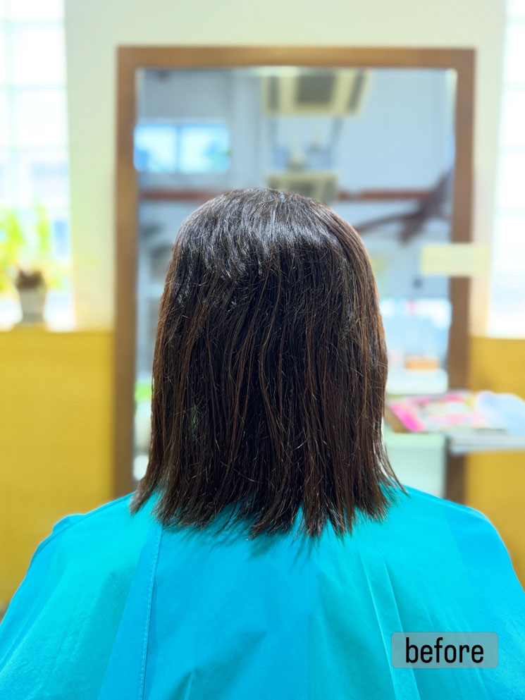 縮毛矯正をする前の髪の状態です。